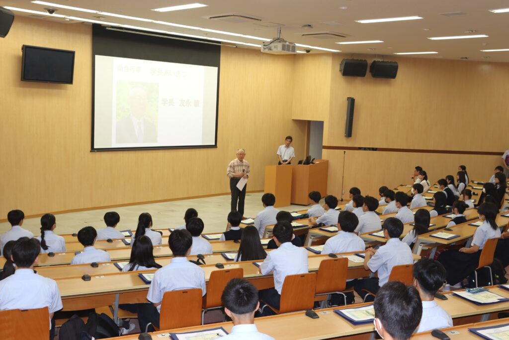 午前の開会行事では、はじめに友永学長より歓迎の挨拶があり、続いて、本学で勤務している由布高校出身の先輩2名が登壇し、高校時代の思い出や、後輩の皆さんへの温かいメッセージを語ってくれました。生徒の皆さんは、先輩の言葉に耳を傾けながら、自分たちの将来について思いを巡らせている様子でした。