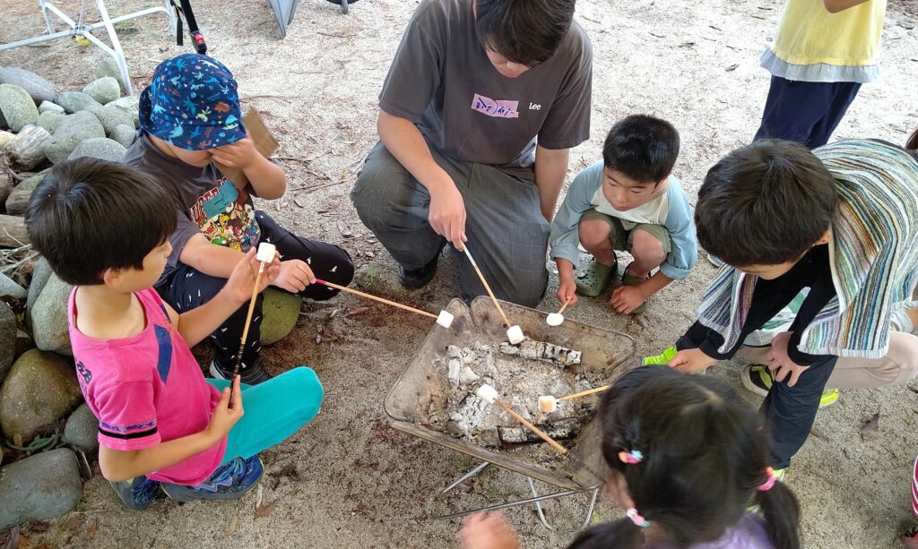 これまでに4回の活動が行われ、延べ9名の学生が参加しました。活動内容は、野外クッキングや野外ゲーム、ハンモック体験、流木を使った秘密基地づくり、火おこし、自然素材を使ったクラフト制作など多岐にわたります。夏には、磯遊びや釣り、ビーチコーミング、SUPボードやカヤックなど、海辺での体験も行われました。