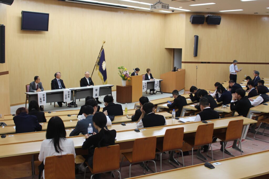 本年度は、中国から11名、台湾から2名、韓国から1名、スリランカから1名の計15名の新入留学生が入学しました。式典には、友永学長をはじめとする学内関係者が列席し、温かく和やかな雰囲気の中で新たな門出を祝いました。
