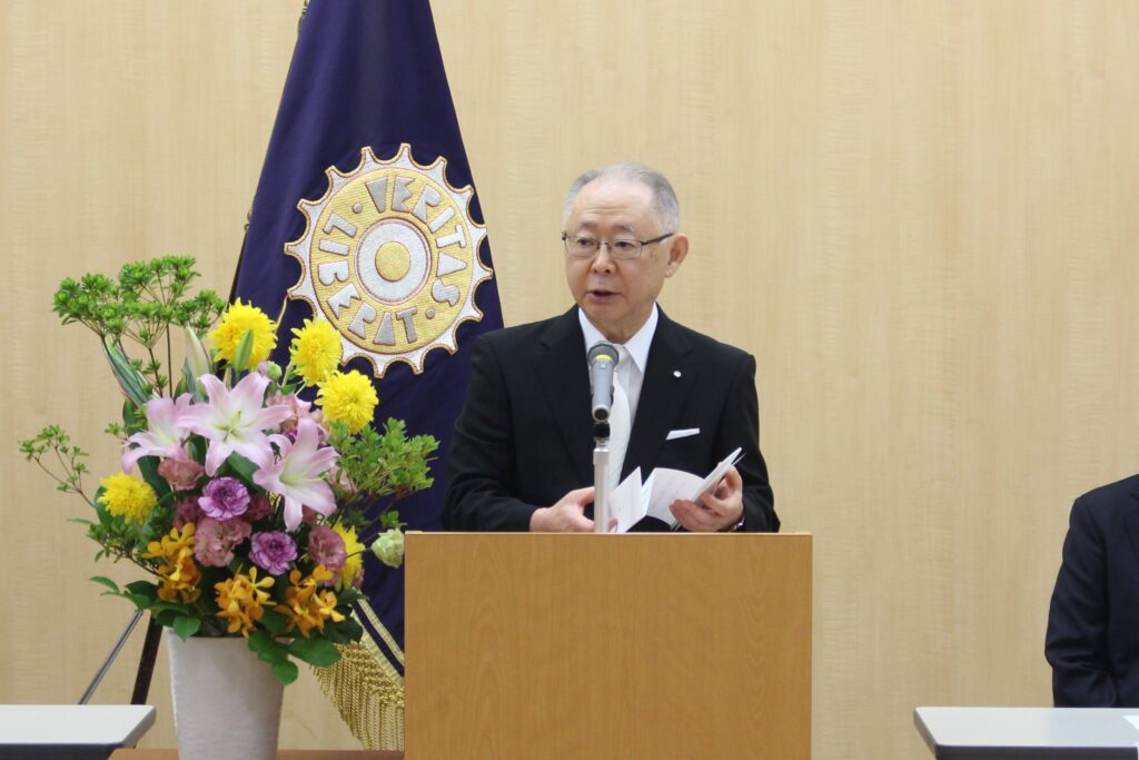 式典では、まず友永学長より新入生15名に対して入学が正式に許可されました。続いて学長は、「ご入学おめでとうございます。大学は、皆さんの学びの場であると同時に、新たな友人を作り、共に成長していく場でもあります。異なる文化を持つ仲間たちと交流し、共に学び、共に過ごすことで、キャンパスライフを豊かなものにして下さい」と式辞を述べられました。