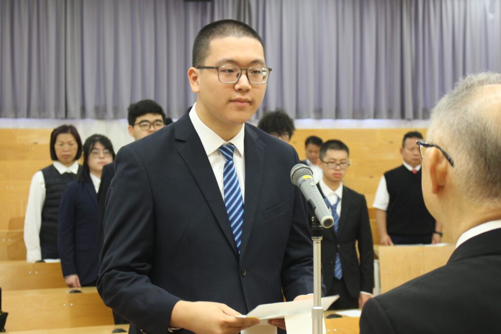 また、新入留学生を代表して、中国出身のオウ テットウさんが登壇し、「多くの仲間と共に、日本の社会、文化、習慣などをしっかりと学び、夢の実現に向けて努力していきたいと思います。」と力強く宣誓を行いました。