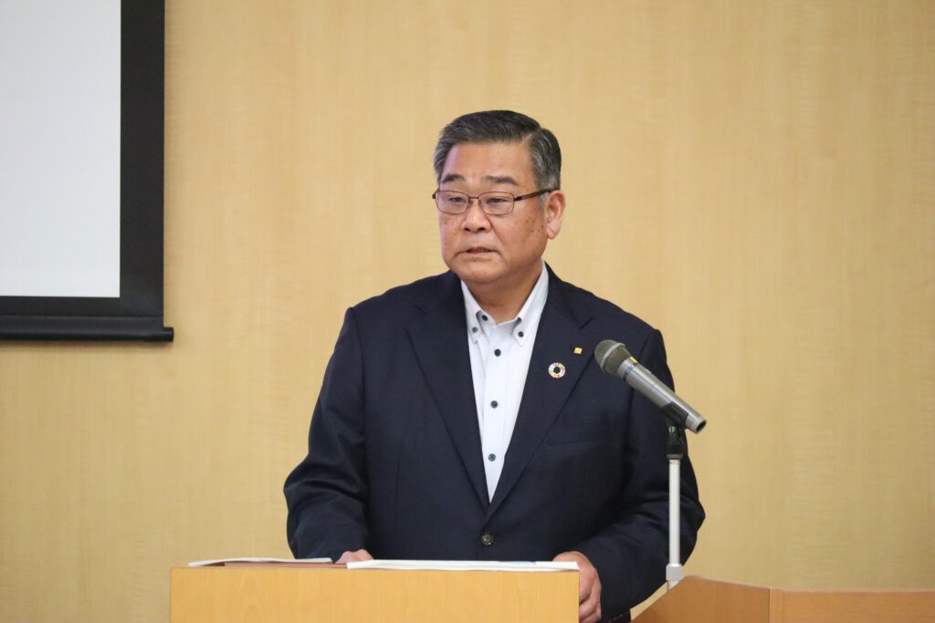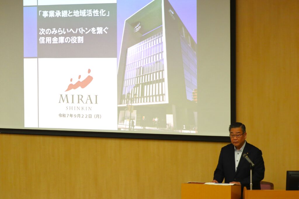 今回の講義では「事業承継と地域活性化〜次のみらいへバトンを繋ぐ信用金庫の役割〜」をテーマに、地域金融機関としての信用金庫が果たす役割や、地域社会の持続的な発展に向けた取り組みについて、実例を交えながらご講演いただきました。