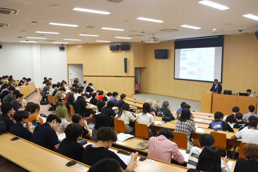 令和7年9月22日(月)、本学メディア教育・研究センター4階メディアホールにて、国際経営学科「会計学の基礎」の授業の一環として、大分みらい信用金庫 理事長・森田展弘氏をお迎えし、特別講義を開催しました。