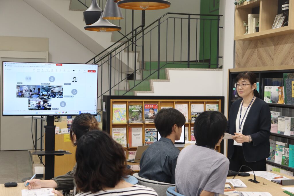 本講座は、附属図書館と丸善リバーウォーク北九州店をオンラインで繋ぐハイブリッド形式で実施され、場所を越えた交流の場となりました。