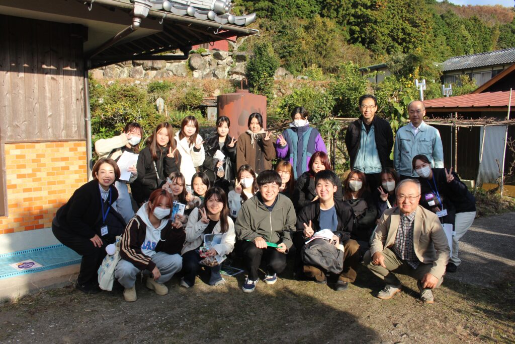令和7年11月19日(水)、本学短期大学部食物栄養科の2年生4名、1年生13名、教職員2名の計19名が、国東市安岐町において、原木乾しいたけ生産現場の視察と生産者の講話を行いました。今回の取り組みは【地域フィールドワーク支援事業】「大分県産原木乾しいたけの美味しさを子どもに繋ぐ食育プロジェクト」(担当教員:海陸留美教授)の一環として実施しました。