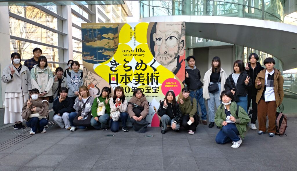 令和7年12月6日(土)、国際言語・文化学科の1年生「基礎演習」芸術表現コース希望者20名が、大分県立美術館(OPAM)で開催中の「きらめく日本美術1300年の至宝展」を鑑賞しました。