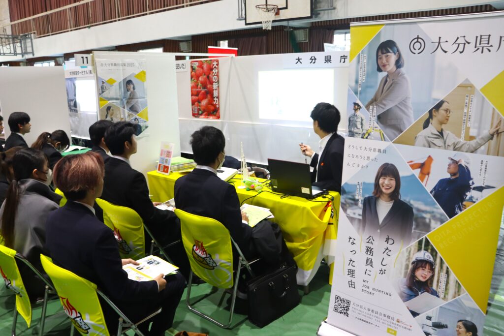 令和8年2月1日(日)、別府大学石垣キャンパスにおいて、令和7年度就活準備フェアを開催しました。当日は、本学の大学・短期大学部あわせて約240名の学生が参加し、多くの企業の担当者と直接対話する貴重な機会となりました。