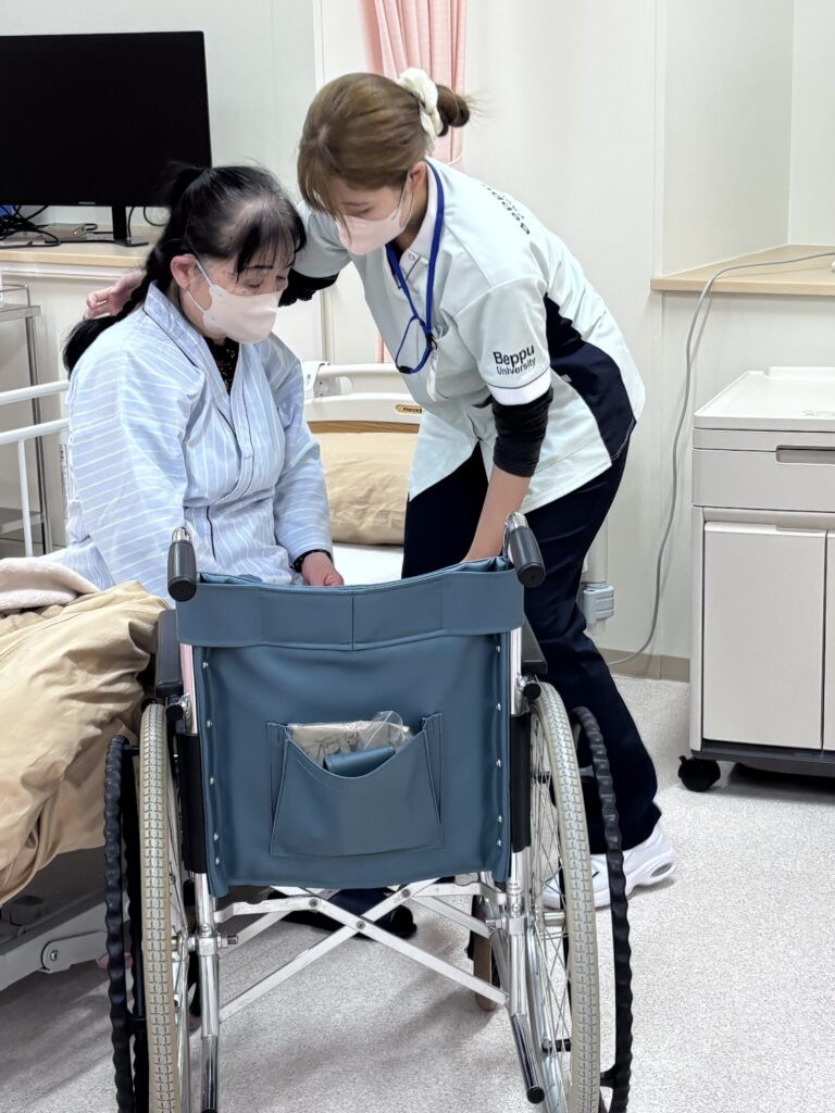 令和8年1月13日、19日の2日間、1年生を対象とした技術チェックにおいて、豊の国医療教育ボランティア会(豊の国SP研究会)の皆様に模擬患者として参加いただきました。