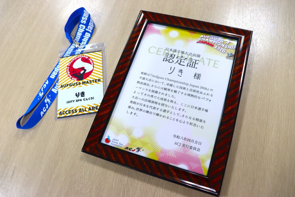 アウフグース世界大会(Aufguss WM)に出場する日本代表を決定する全国大会で、地方予選、日本選手権を経て、個人・団体それぞれ上位3組が世界大会へ進みます。競技はサウナ室内で行う 15分以内のショーアウフグース演技で、その技術や表現力が競われます。アウフグースマスターたちが、世界大会出場権を目指して挑む、国内最高峰の大会です。