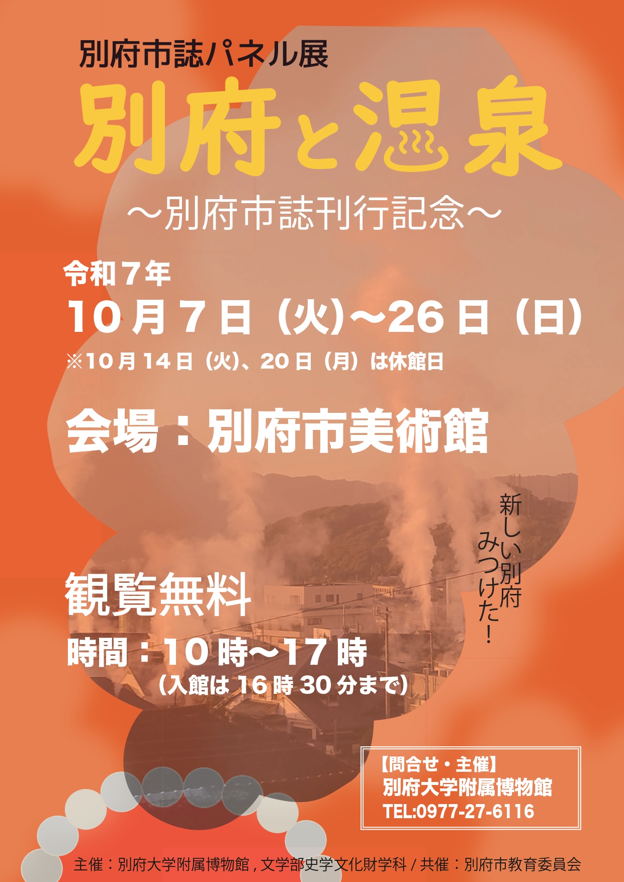 別府大学附属博物館では、別府市誌をもとに別府温泉の歴史と魅力を紹介する企画展「別府と温泉」を、別府市美術館にて開催いたします。