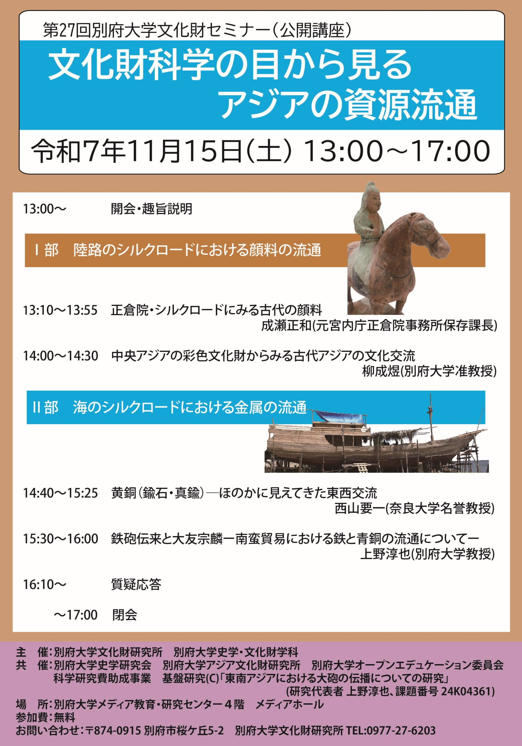 ◆講座:第27回別府大学文化財セミナー「文化財科学の目から見るアジアの資源流通」