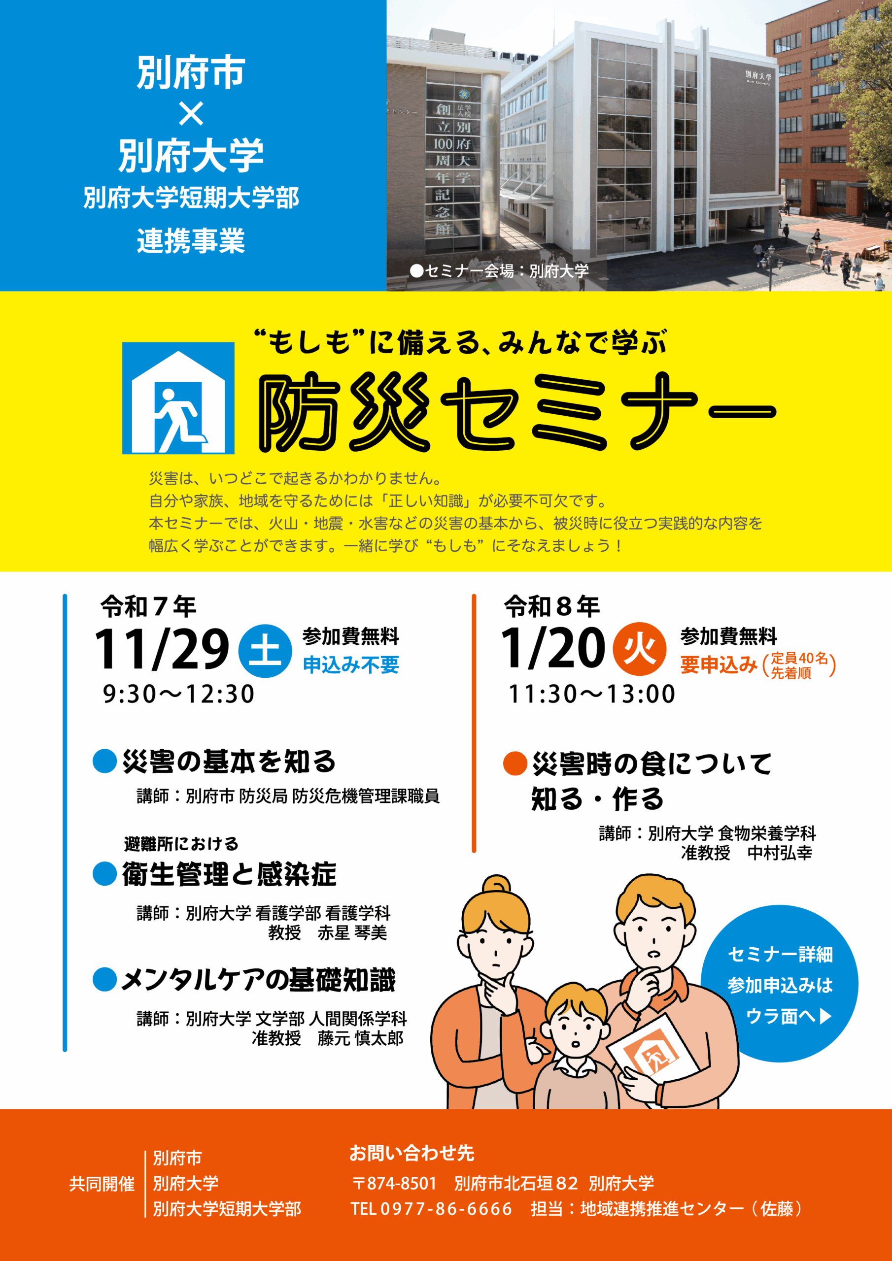 別府市✕別府大学・別府大学短期大学部 連携事業「”もしも”に備える、みんなで学ぶ防災セミナー」開催のおしらせ