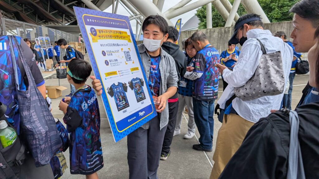 スタジアム周辺の清掃活動を通じて、環境保全への意識向上を図りました。学生たちは来場者のゴミ拾い活動を支援し、終了後には分別作業を行って、地域の美化に貢献しました。