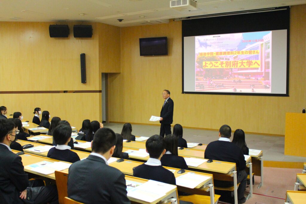 令和7年10月30日(木)、私立福徳学院高等学校健康調理科2年生の生徒26名が、別府大学石垣キャンパスにて体験学習を行いました。