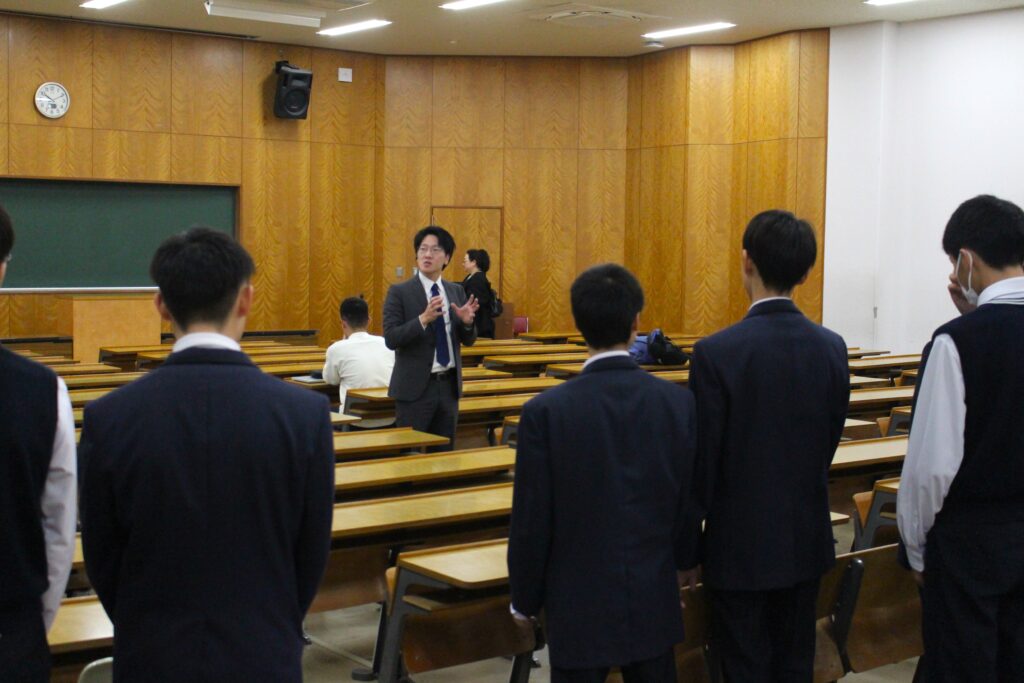 はじめに、大学の施設見学を実施し、大講義室や附属図書館などを巡りながら、大学の学びの環境について理解を深めました。