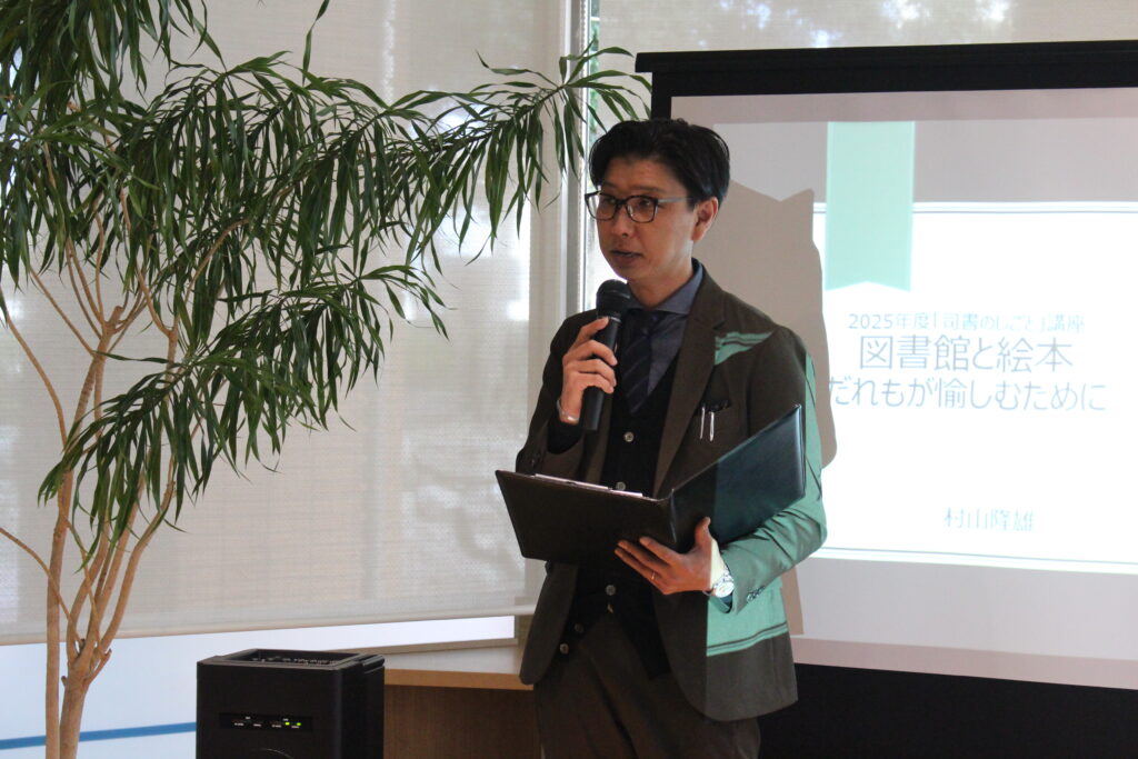 令和7年11月8日(土)、本学司書課程では、進路支援企画として公開講座司書のしごと6「図書館と絵本:だれもが愉しむために」を本学附属図書館1階1階Library Loungeで開催しました。