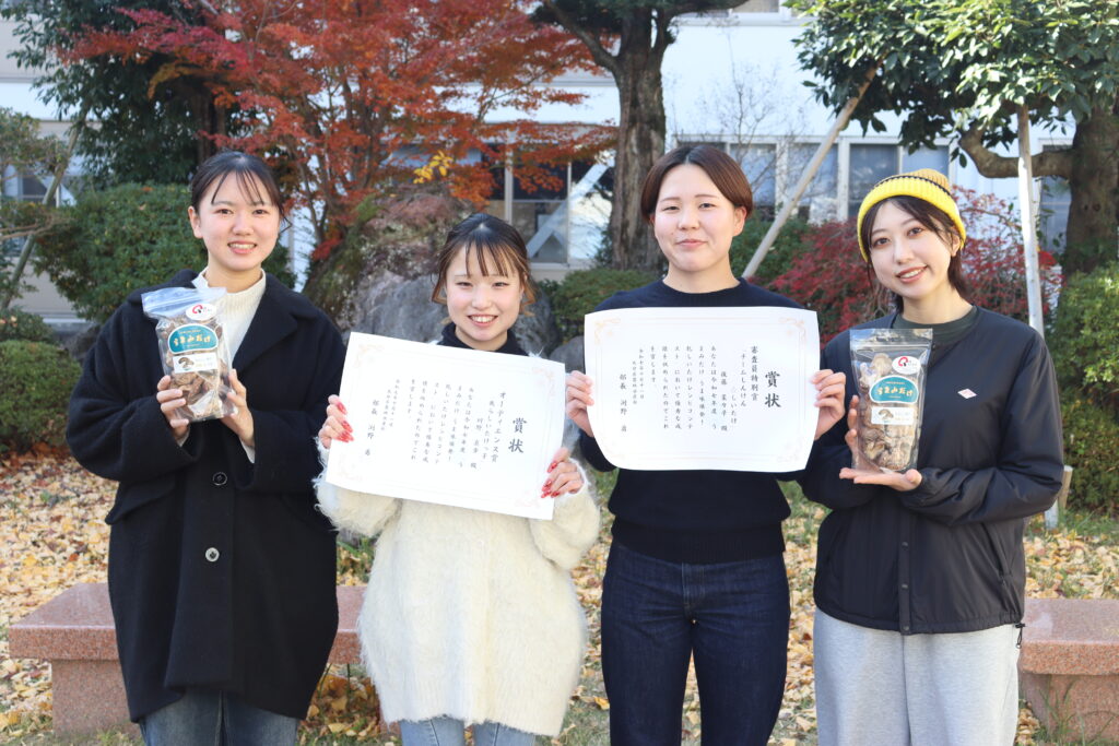 学生たちは、「このような賞をいただけてとても嬉しかったです。今回の受賞を励みに、これからも料理づくりに挑戦していきたいと思います」「しいたけの魅力が多くの人に伝わってもらえたら嬉しいです」と、受賞の喜びを語っていました。
