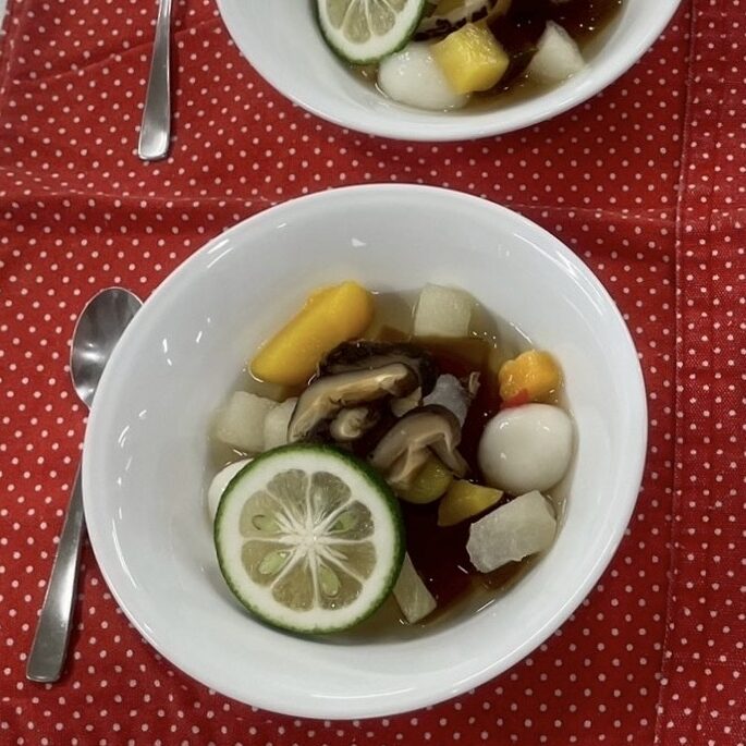 また、戻し汁を寒天にすることで、しいたけが苦手な人でも食べやすくなるよう工夫しました。