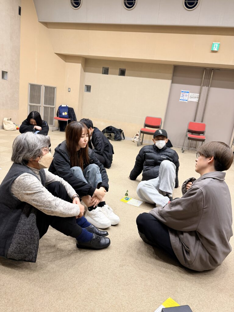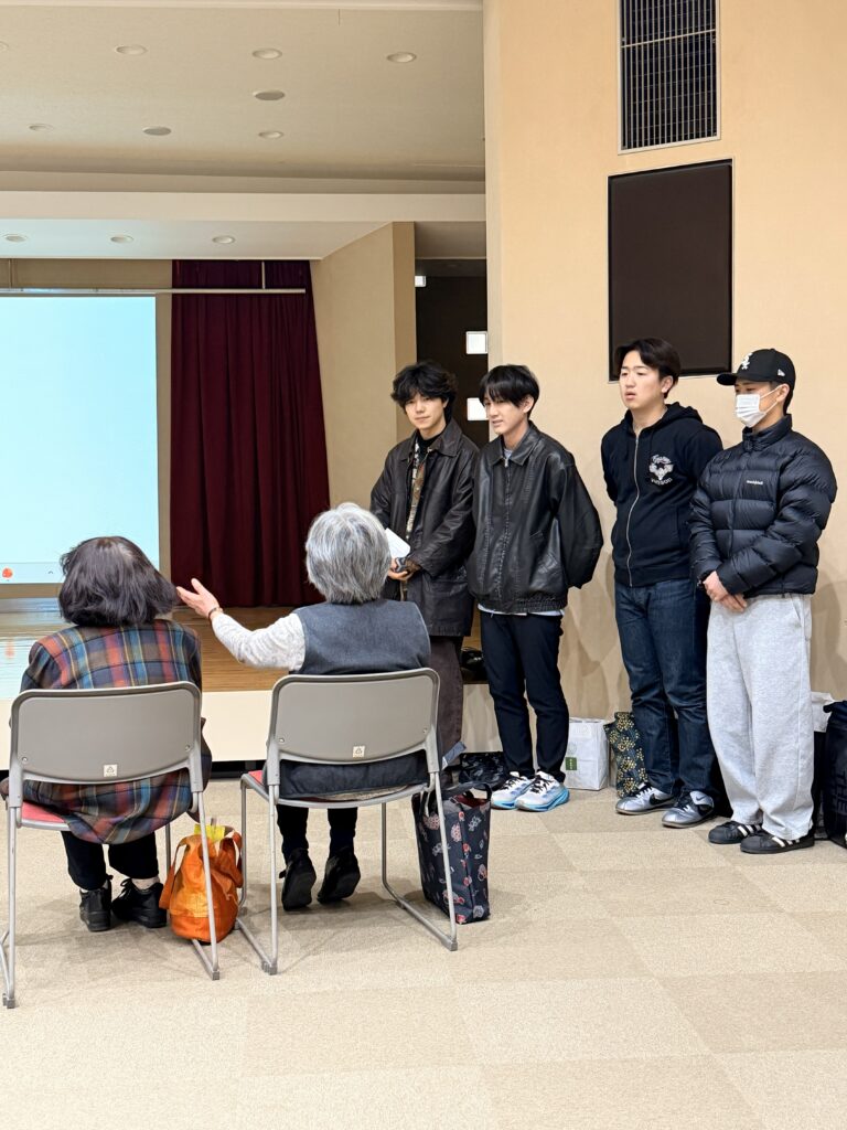 令和8年1月10日(土)、⼤分市野津原市⺠センター多⽬的ホールにおいて、野津原方言調査会と本学学生による『野津原方言集』を用いた交流授業(6年目)を行いました。今回参加したのは、国際言語・文化学科の「言語文化論Ⅱ」および「言語文化特論Ⅱ」を受講する学生17名、野津原方言調査会の那須政子さん・赤星ヨシミさん、そして元大分市地域おこし協力隊の藤丸淑美さんです。