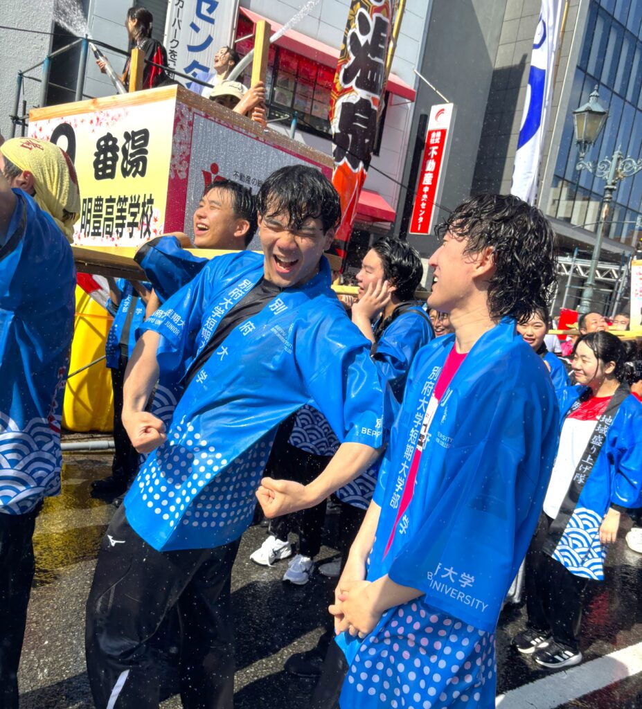 学生たちにとって、地域の伝統行事に全身で体感し、別府八湯の豊かな温泉の恵みに感謝する機会となりました。