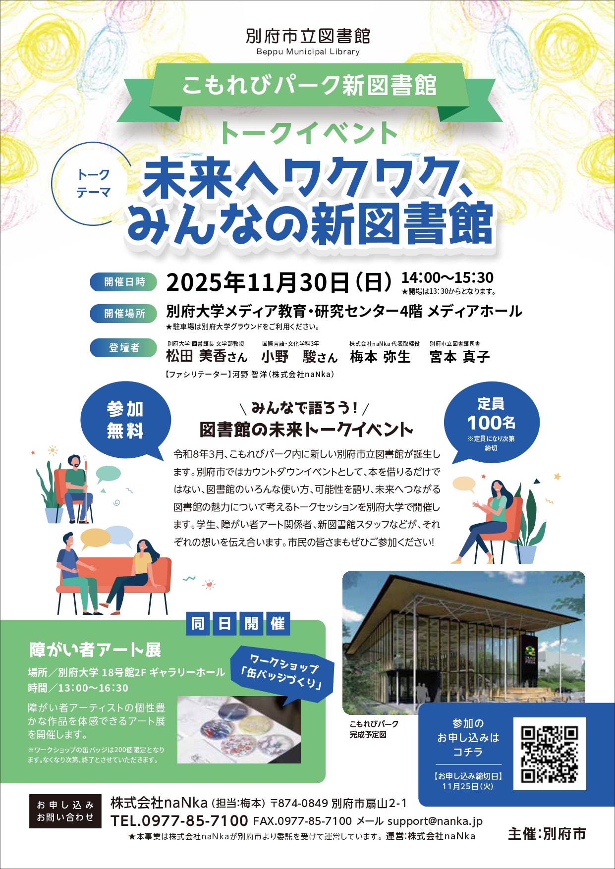 トークイベント 未来へワクワク、みんなの新図書館 – 別府市立図書館